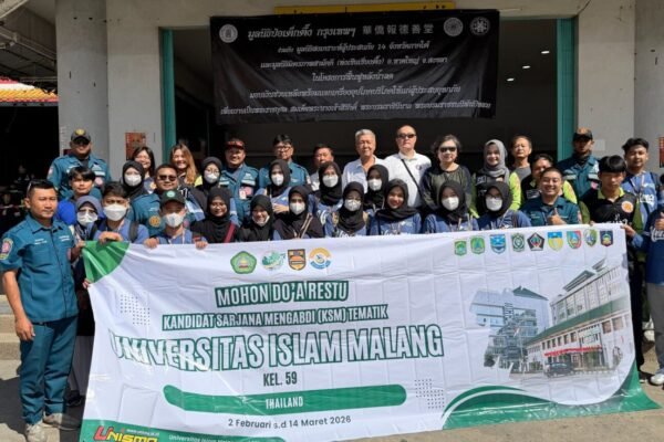 Indonesiandaily.com- Mahasiswa Universitas Islam Malang (Unisma) yang tergabung dalam program Kandidat Sarjana Mengabdi (KSM-T) 59 Thailand melaksanakan kegiatan English Camp sebagai bagian dari program pengabdian internasional. Kegiatan tersebut berlangsung di salah satu sekolah di wilayah Hat Yai, Songkhla, Thailand, dengan peserta dari tingkat taman kanak-kanak hingga kelas lanjutan. Program ini berada di bawah bimbingan Dosen…