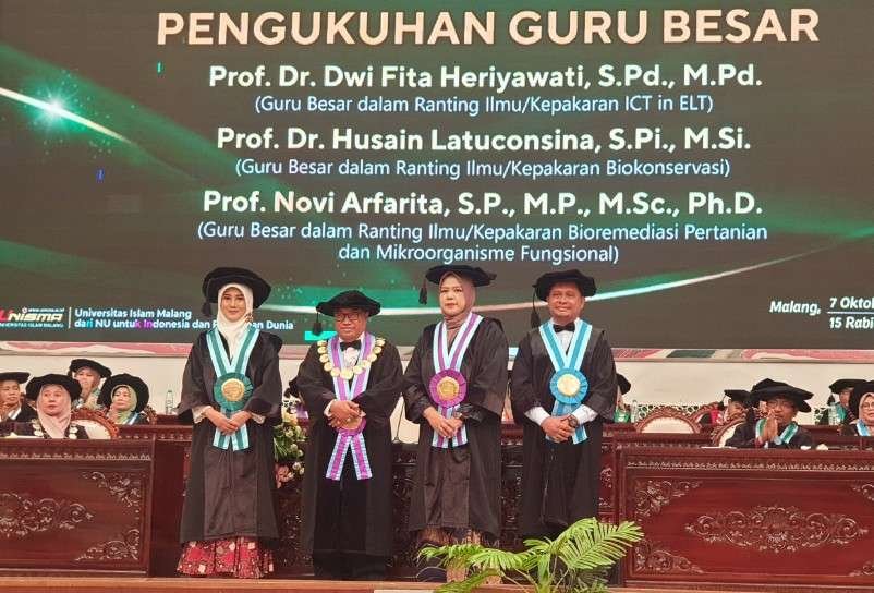 Indonesiadaily.com- Universitas Islam Malang (UNISMA) kembali menorehkan capaian akademik dengan mengukuhkan tiga Guru Besar sekaligus. Pengukuhan ini mendapat apresiasi dari Ketua Lembaga Layanan Pendidikan Tinggi (LL Dikti) Wilayah VII Jawa Timur sebagai wujud nyata penguatan kampus berdampak.